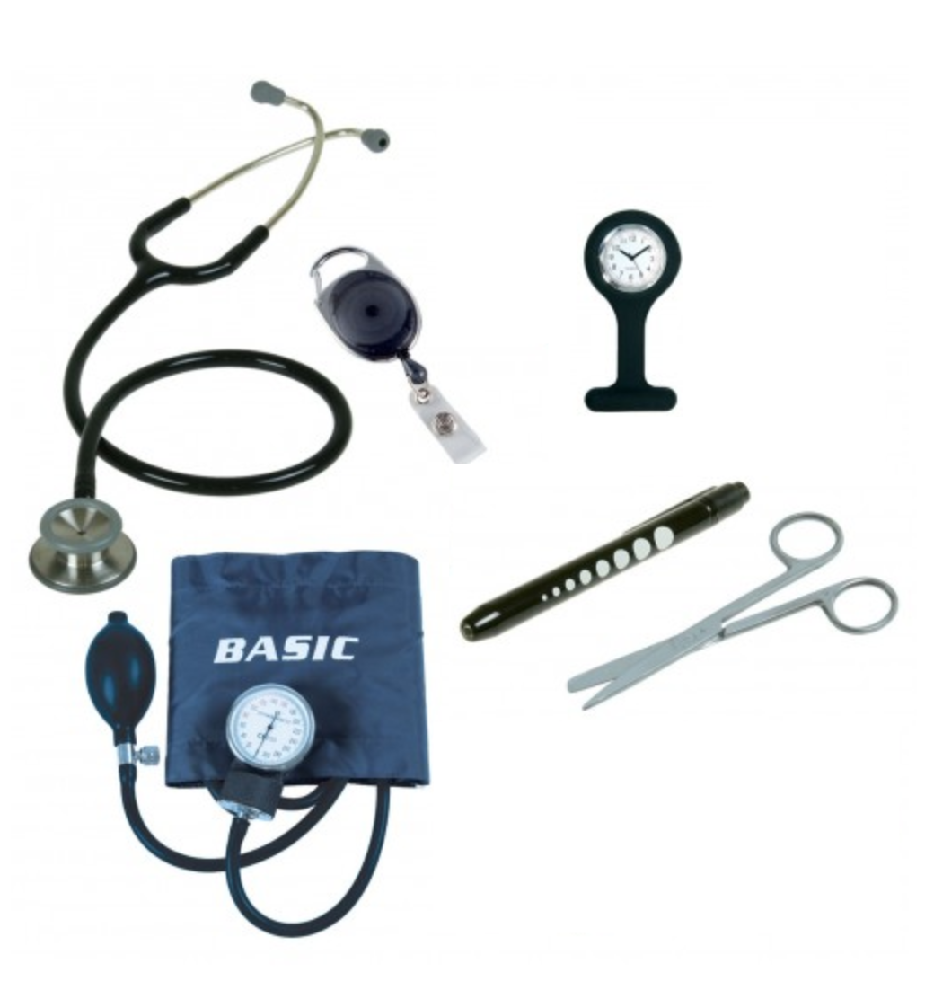 This student nursing pack is designed to meet the university requirements for nursing students Australia wide. Kits contains the following: Liberty Classic Stethoscope – Black, Basic Blood Pressure Sphygmomanometer, Liberty Penlight Torch - Black, Fob Watch – Black, Retractable ID Tag and Holder, Basic Surgical Scissors Sharp Blunt Straight 13cm, Document Wallet with Zip - Clear