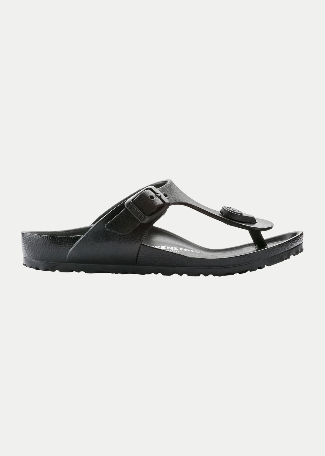 The Gizeh, a classic in the extensive BIRKENSTOCK product range, has been given a new and modern twist. Modeled on the cork sandal, it is made from ultra light and highly flexible EVA. This thong sandal is made from a single piece of material and produced completely in Germany.