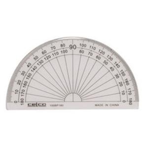 The Celco Protractor can measure angles up to 180 degrees and also includes a 10 cm ruler for your convenience. It has a transparent design which makes it easy to see what you're working on and a bevelled edge for easier marking and drawing.