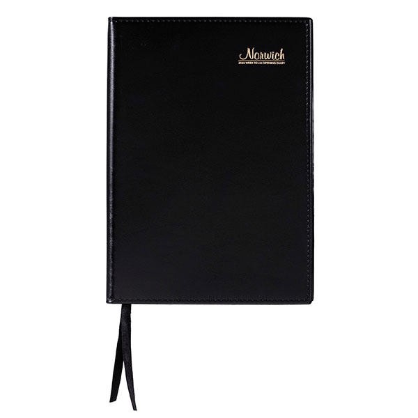 The Cumberland Norwich spiral-bound diary features a stylish, flexible, leather grain cover, all-round border stitching and further