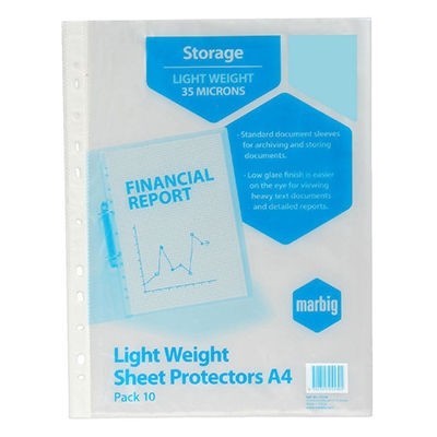 The Marbig Sheet Protector range is perfect for all presentation and archiving. The pockets resist tearing and provide copysafe protection for documents.